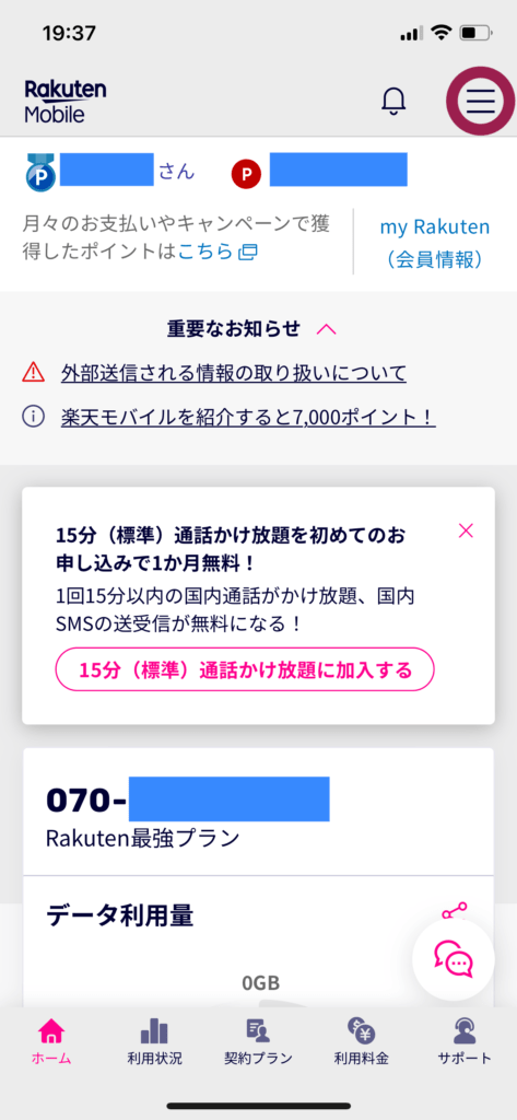 my楽天モバイル(App Store / Google Play)